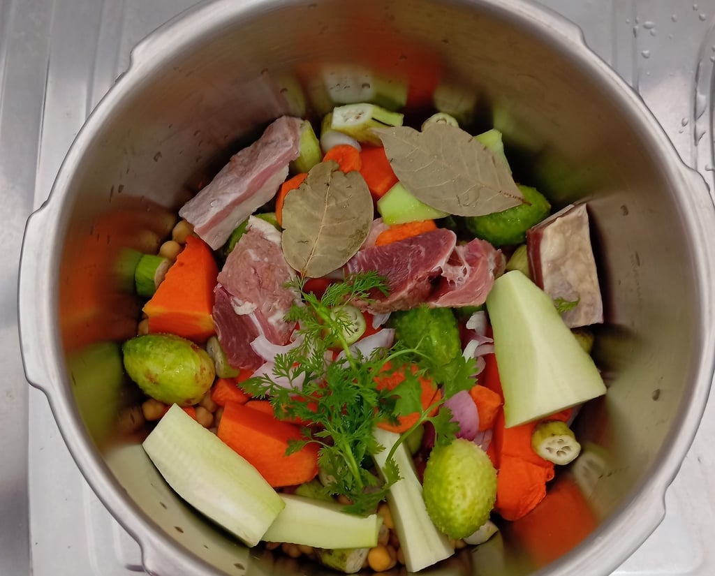 O cozido é um preparo tradicional presente em várias regiões do Brasil, especialmente no Nordeste, onde a charque é amplamente utilizada por sua durabilidade e sabor intenso. A combinação de grão-de-bico com legumes regionais como maxixi e quiabo reflete a adaptação da culinária local aos ingredientes disponíveis, resultando em um prato rústico, nutritivo e cheio de identidade cultural 🇧🇷❤️.