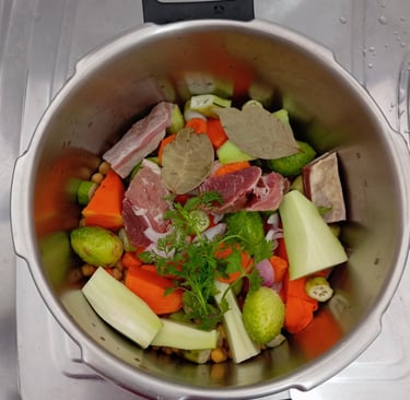 Para garantir rapidez, segurança e melhor sabor no cozido, utilize uma panela de pressão de boa qualidade. Ela reduz o tempo de preparo e preserva os nutrientes dos ingredientes.